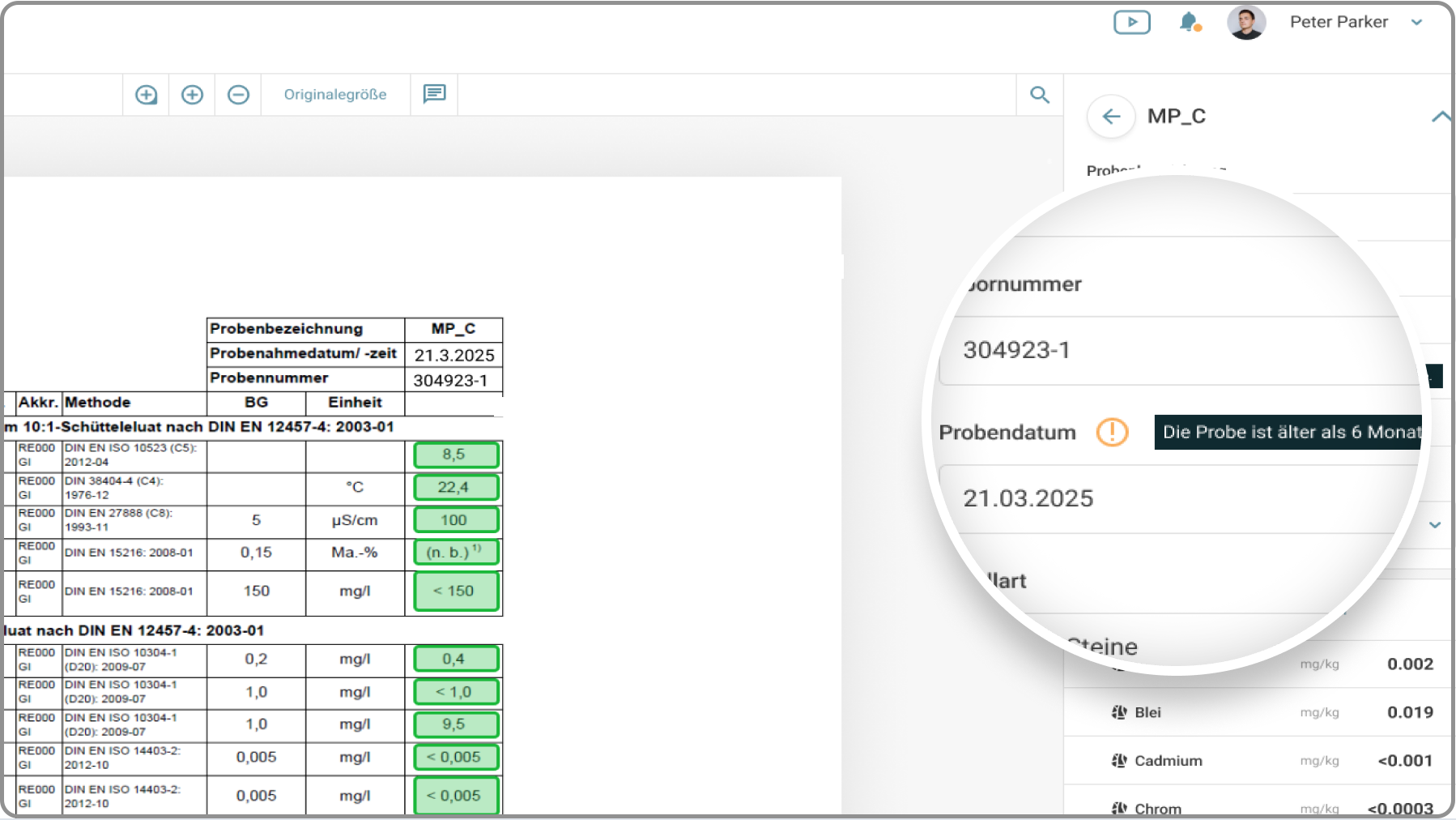 Durch die automatische Prüfung des Probenalters werden Fehlannahmen vermieden und Genehmigungsauflagen besser eingehalten.