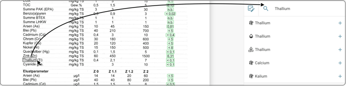 - Parametersuche anhand von Name im Dokument: Wenn Du einen Parameter hinzufügen möchtest, den Du im Dokument gefunden hast, kannst Du bei der Sucheingabe auch einfach auf den Parameternamen im Dokument klicken. Der Wert wird in die Suchzelle eingefügt und Du kommst schneller zum Hinzufügen und zu Deinem Ergebnis.